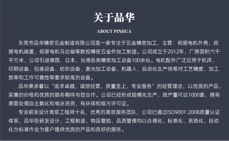 專注數控精密五金件的研發制造主營伺服電機外殼、伺服電機端蓋、伺服電機軸等定制生產